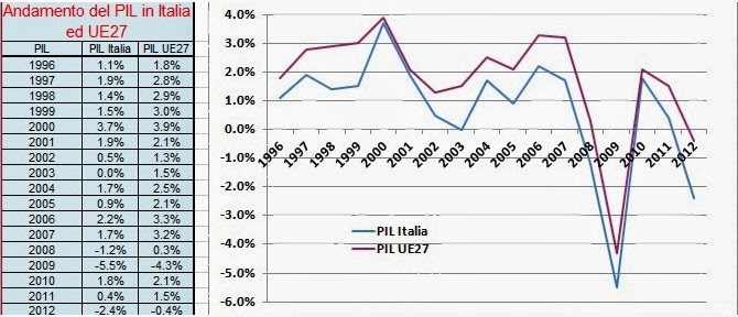 Cioè non considerando l’effetto inflazione che si è manifestata nel periodo considerato e che, comunque, giova ricordare, è stata di circa il 30% dal 2000 al 2013.